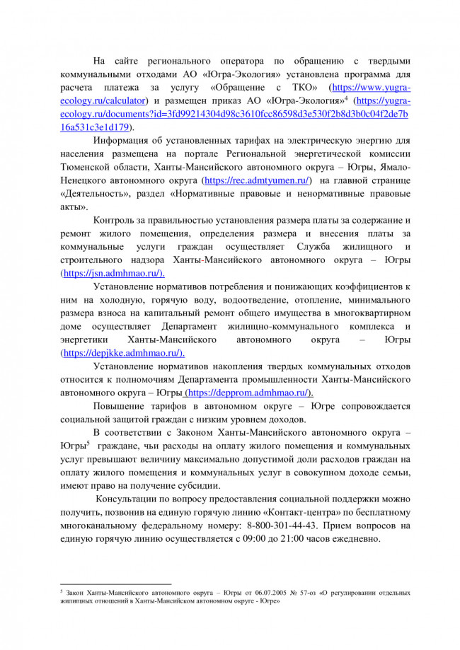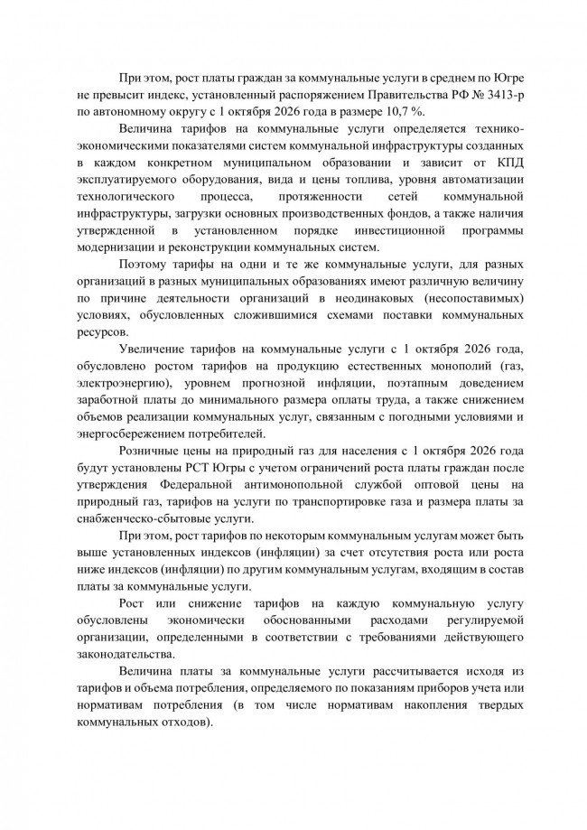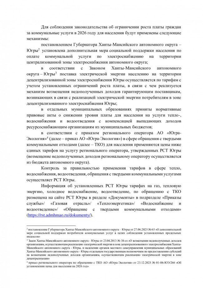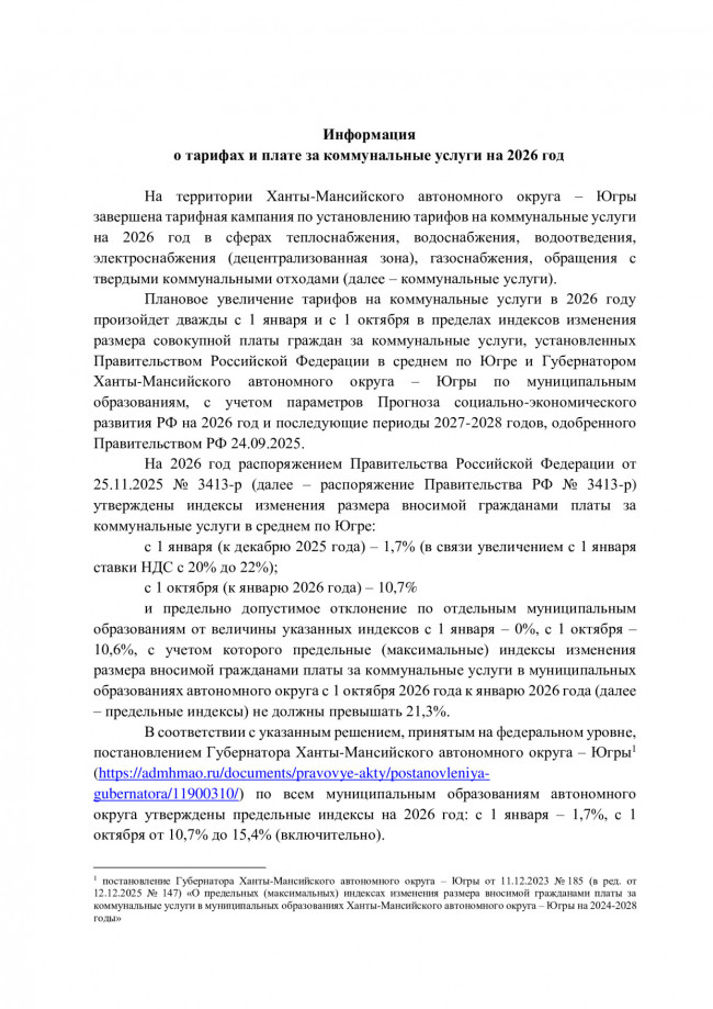 Информация о тарифах и плате за коммунальные услуги на 2026 год